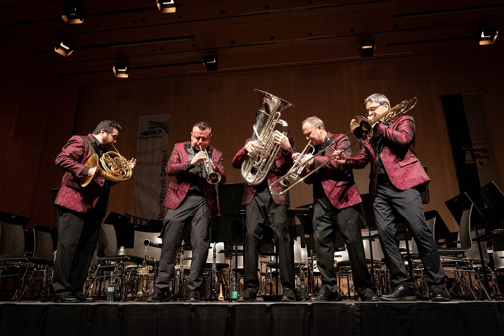 eröffnete der Musikverein das einzigartige Konzert mit John Philip Sousas "The Thunderer". Anschließend präsentierte Boston Brass drei weitere Stücke, darunter "Sabre Dance" und "Wachet Auf", wobei der Trompeter Jose Sibaja mit aufregenden Interpretationen brillierte. Ein weiterer Höhepunkt war die Solo Darbietung von "Blue Bells of Scotland" durch Boston Brass. Gemeinsam mit der Band präsentierte der Musikverein das mitreißende Stück "Introduction and Vivace" von Rick DeJonge, das sich durch kraftvolle Melodien, energiegeladene Rhythmen und virtuose Instrumentalsoli auszeichnete. Der Musikverein Ohlsdorf begeisterte das Publikum mit atemberaubenden Ballettmelodien und der stimmungsvollen Komposition "Oregon" von Jacob de Haan. Das gemeinsame Stück "Heroes and Legends" von Barry Kopetz entführte die ZuhörerInnen in eine Welt voller Abenteuer und Mythen.